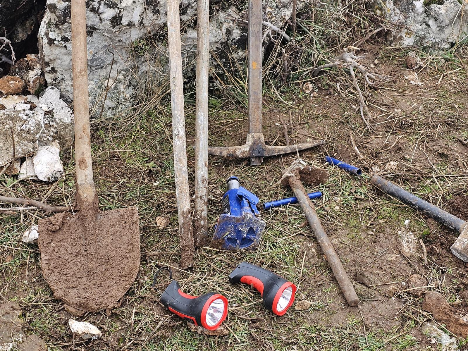 Şanlıurfa İl J.K.lığı tarafından “Kültür ve Tabiat Varlıklarının Korunması” kapsamında icra edilen faaliyetler sonucunda Haliliye İlçesi sınırları içerisinde bulunan sit alanında Y.S, K.B, İ.A, A.B, ve M.E. isimli şahıslar kaçak kazı yaptıkları esnada Haliliye İlçe J.K.lığı ekiplerince suçüstü yakalanmışlardır. Olay yeri ve çevresinde yapılan incelemede kaçak kazıda kullanılan;